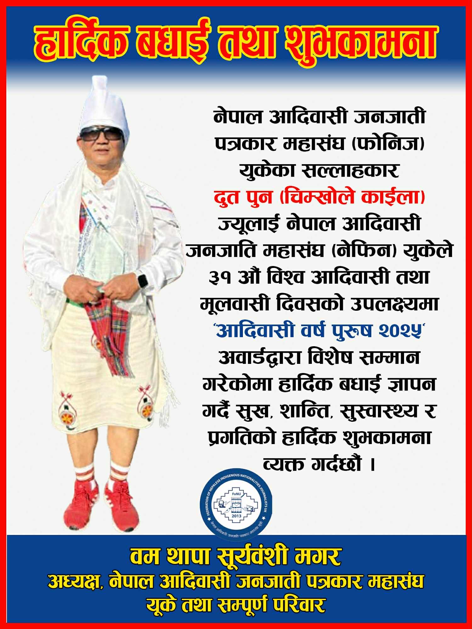 बेलायत, २१ फेब्रुअरी – मगर संघ युकेले ४४औँ मगर दिवस बेलायतको अल्डरसटस्थित एम्पायर हलमा भव्य रूपमा सम्पन्न गरेको छ। बेलायतका विभिन्न सहरबाट मगर समुदायका सदस्यहरू, विभिन्न संघसंस्थाका प्रतिनिधि तथा नेपाली डायस्पोराको उल्लेखनीय सहभागिताले कार्यक्रमलाई विशेष बनाएको थियो। कार्यक्रमको औपचारिक उद्घाटन...