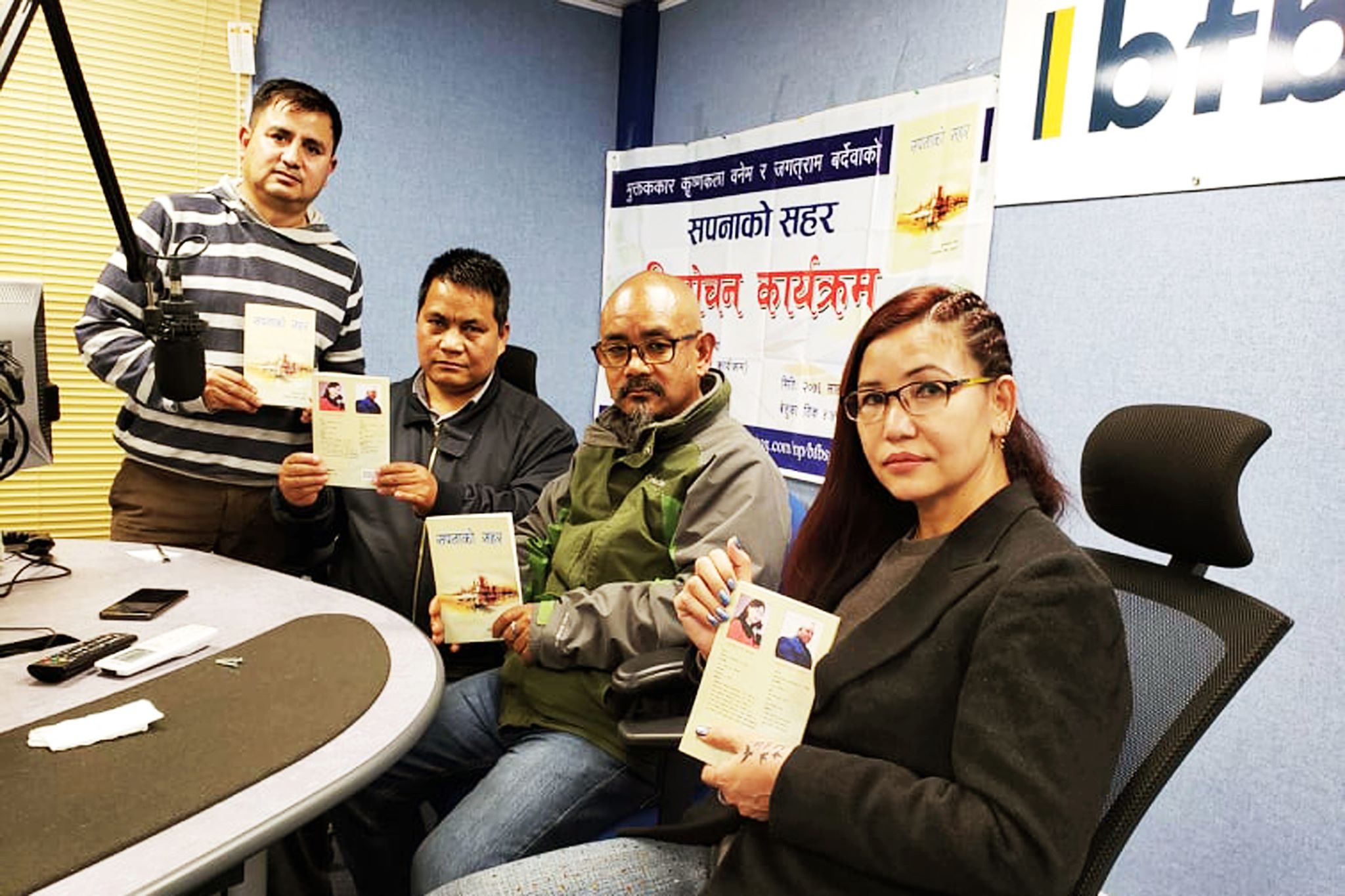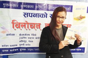 • ८ मार्च, लण्डन । गीतकार तथा मुक्तककार कृष्णकला वनेम र जगतराम बर्देवा ‘घायल’को संयुक्त मुक्तकसङ्ग्रह सपनाको सहरको हालै बीएफबीएस रेडियो, काठमाडौँको आयोजनामा विमोचन गरिएको छ ।